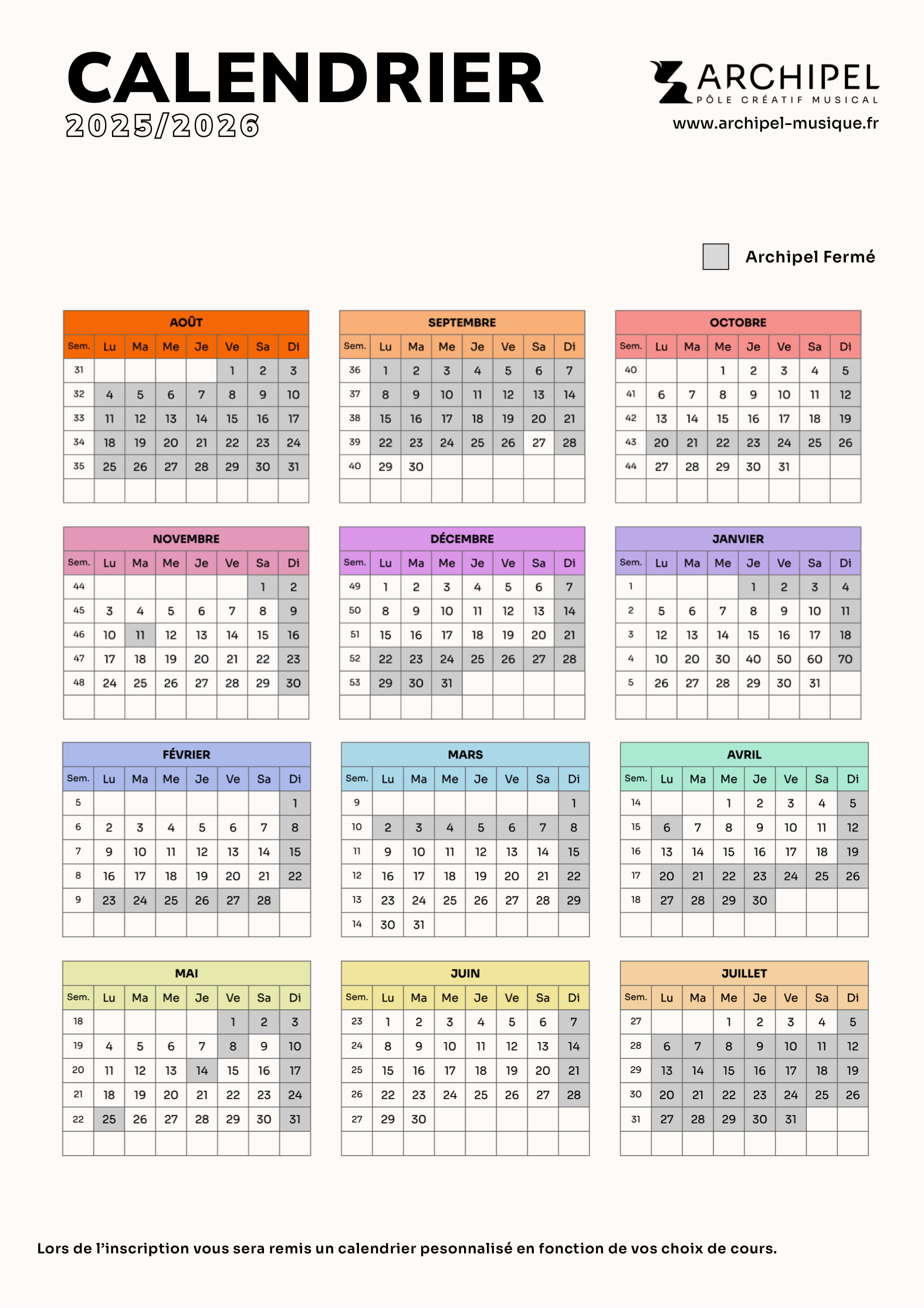 • Sur demande, au moment de l’inscription;